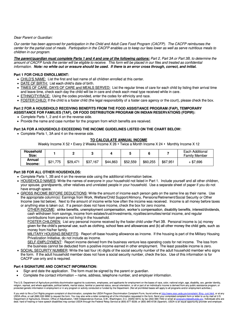 Get the free Child and Adult Care Food Food Program bIncomeb Eligibility bFormb - jccc