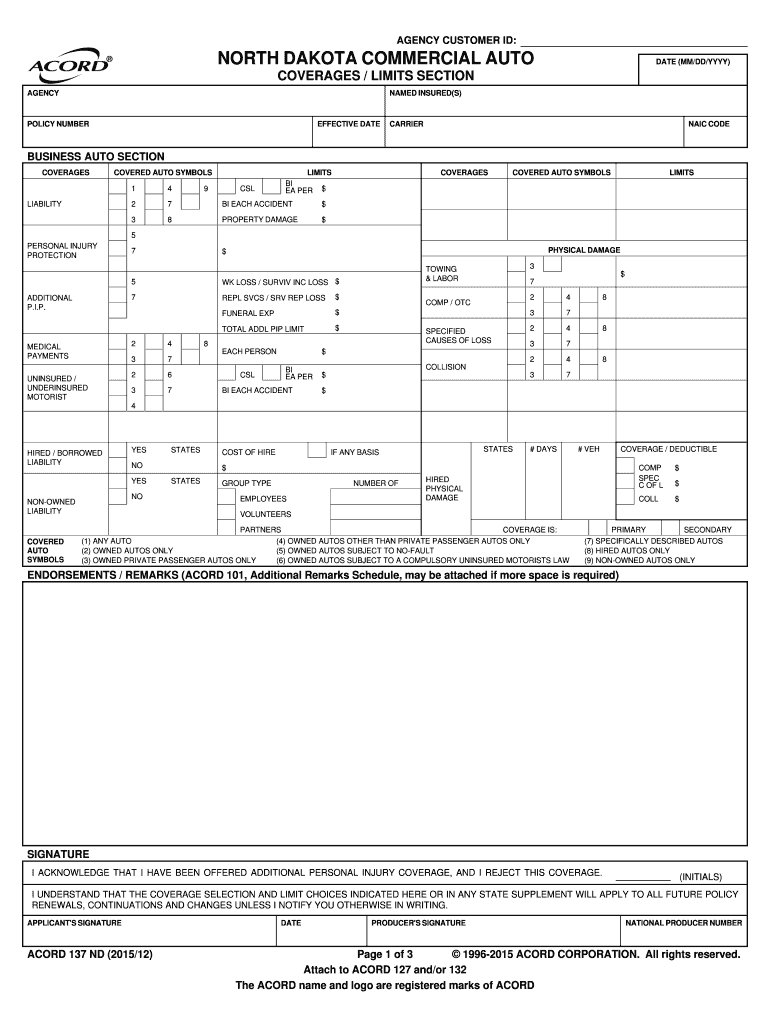 Get the free NORTH DAKOTA COMMERCIAL AUTO