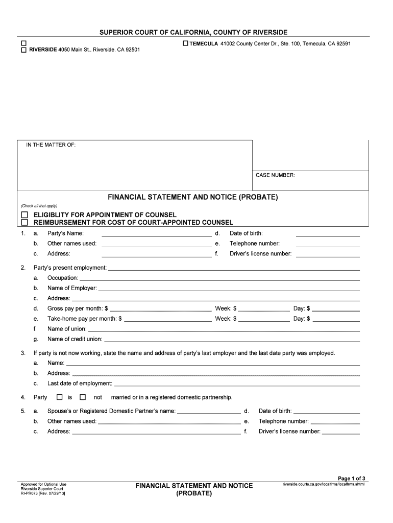 Get the free FINANCIAL STATEMENT AND NOTICE PROBATE - riverside courts ca