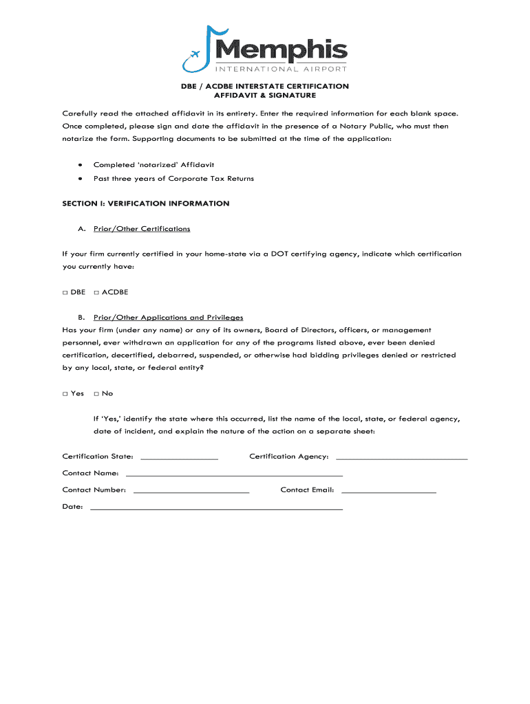 This certification is necessary for businesses that want to qualify for the Disadvantaged Business Enterprise (DBE) and Airport Concession Disadvantaged Business Enterprise (ACDBE) programs.