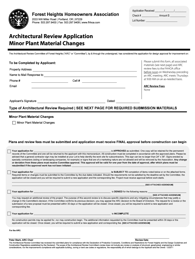 Get the free Architectural Review Application Minor Plant Material Changes