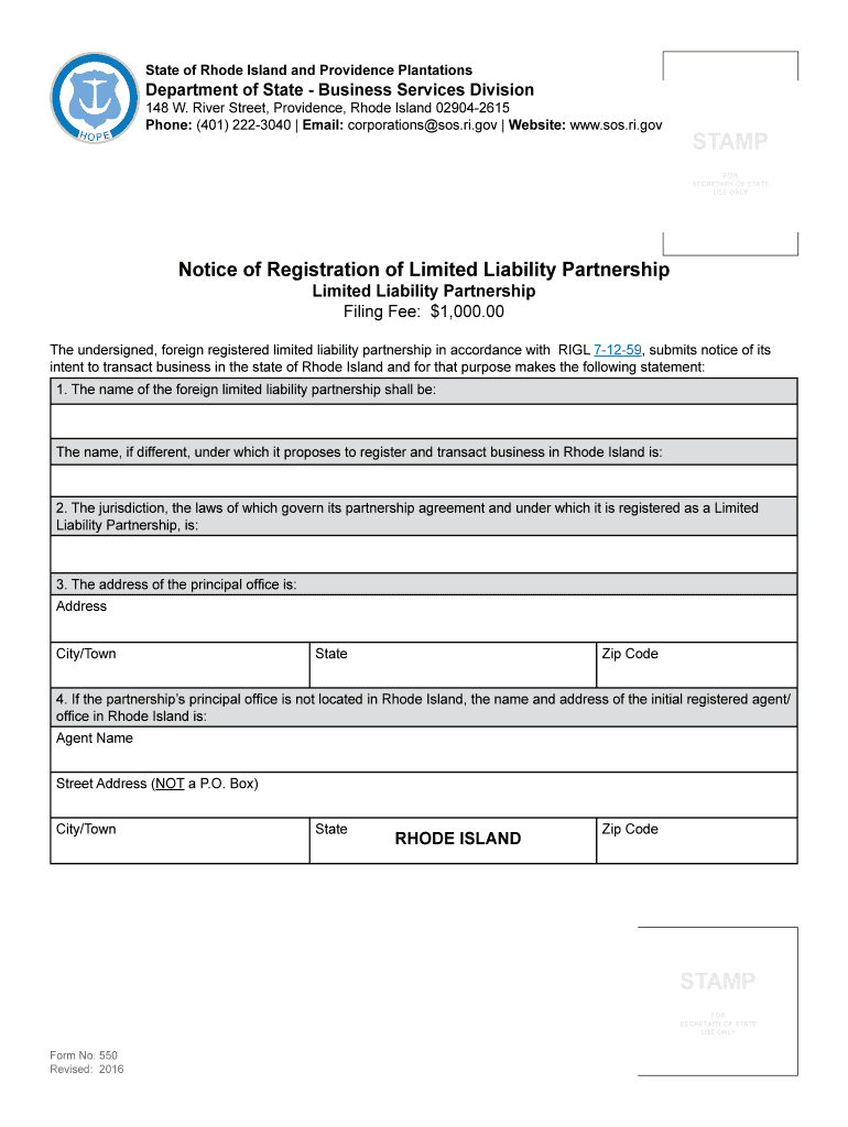 State of Rhode Island and Providence Plantations Department of State Business Services Division Instructions for Filing Notice of Foreign Registered Limited Liability Partnership Section 71256 of