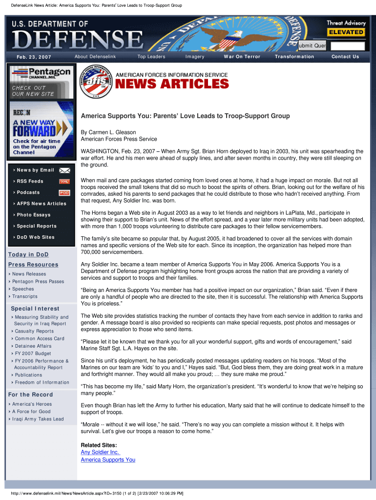 How to fill out defenselink news article america
