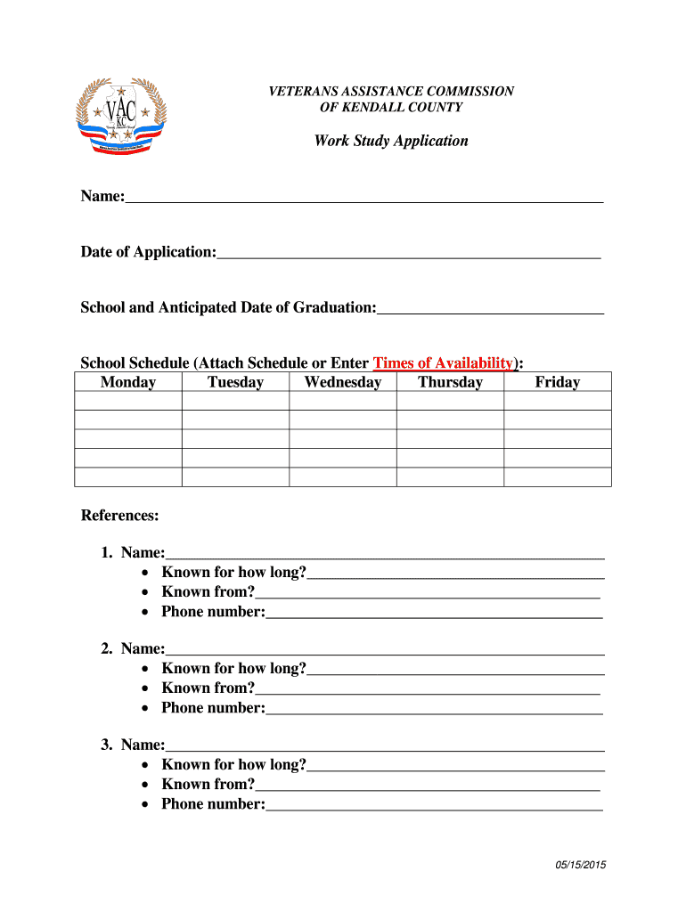Get the free VA WorkStudy Position - cokendallilus - co kendall il