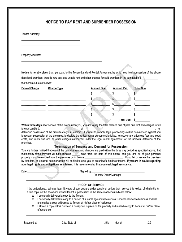Get the free NOTICE TO PAY RENT AND SURRENDER POSSESSION