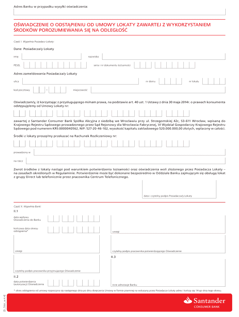 Get the free OSWIADCZENIE O ODSTAPIENIU OD UMOWY LOKATY ZAWARTEJ Z - santanderconsumer