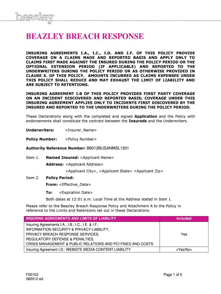 Edit your beazley breach response form online