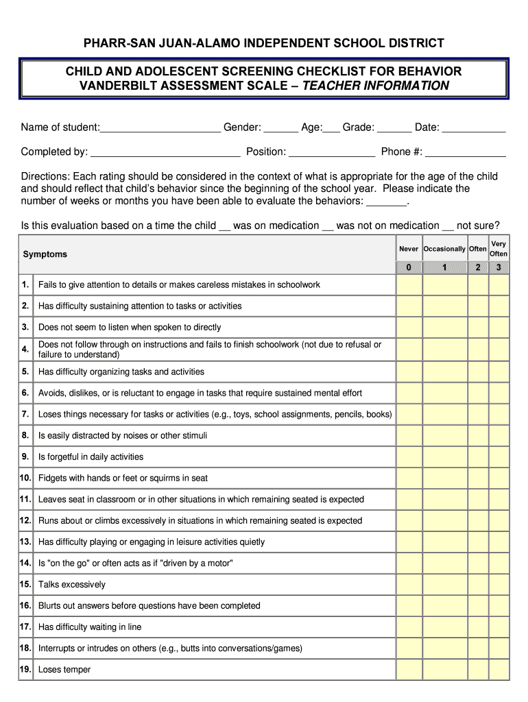 Get the free Vanderbilt Assessment-teacherpdf - Schoolwires - psjaisd schoolwires