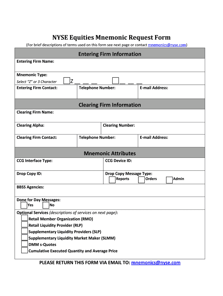 How to fill out nyse equities mnemonic request