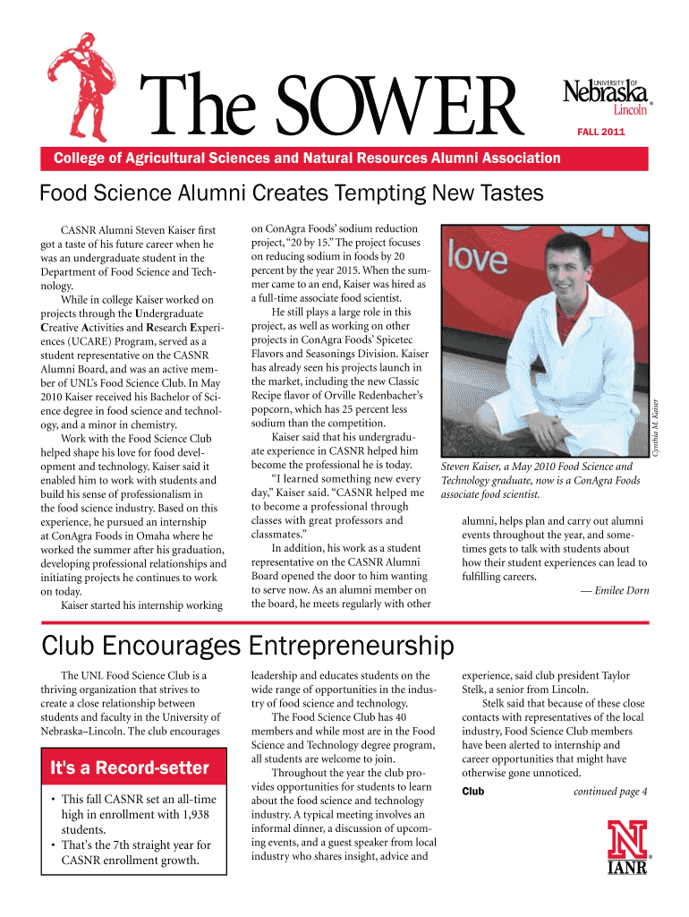 Get the free The SOWER FALL 2011 College of Agricultural Sciences and Natural Resources Alumni As...