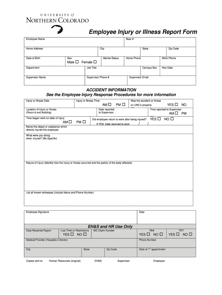 Get the free Employee Injury or Illness Report Form - Greeley Colorado - unco