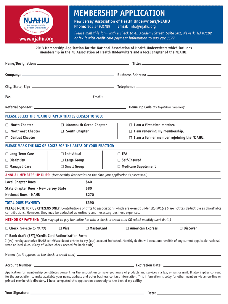 New Jersey Association of Health Underwriters/NJ AHU Phone: 908.349.0789 Email: info Noah.org New Jersey Association of Health Underwriters Please mail this form with a check to 45 Academy Street,