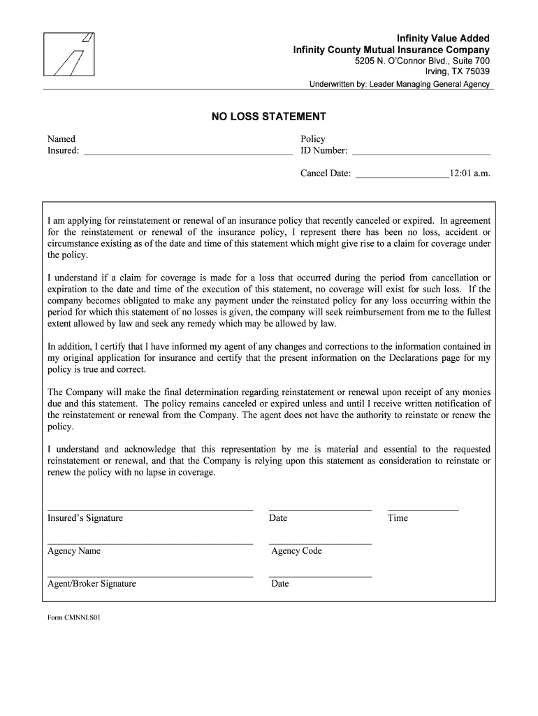 How to fill out a no loss statement: