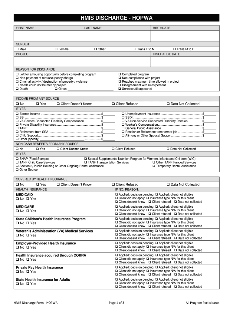 Hmis Discharge - Hopwa is not the form you're looking for?Search for another form here.
