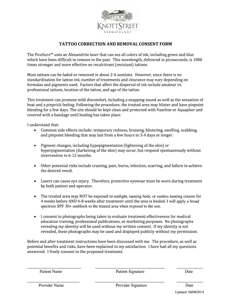 TATTOO CORRECTION AND REMOVAL CONSENT From