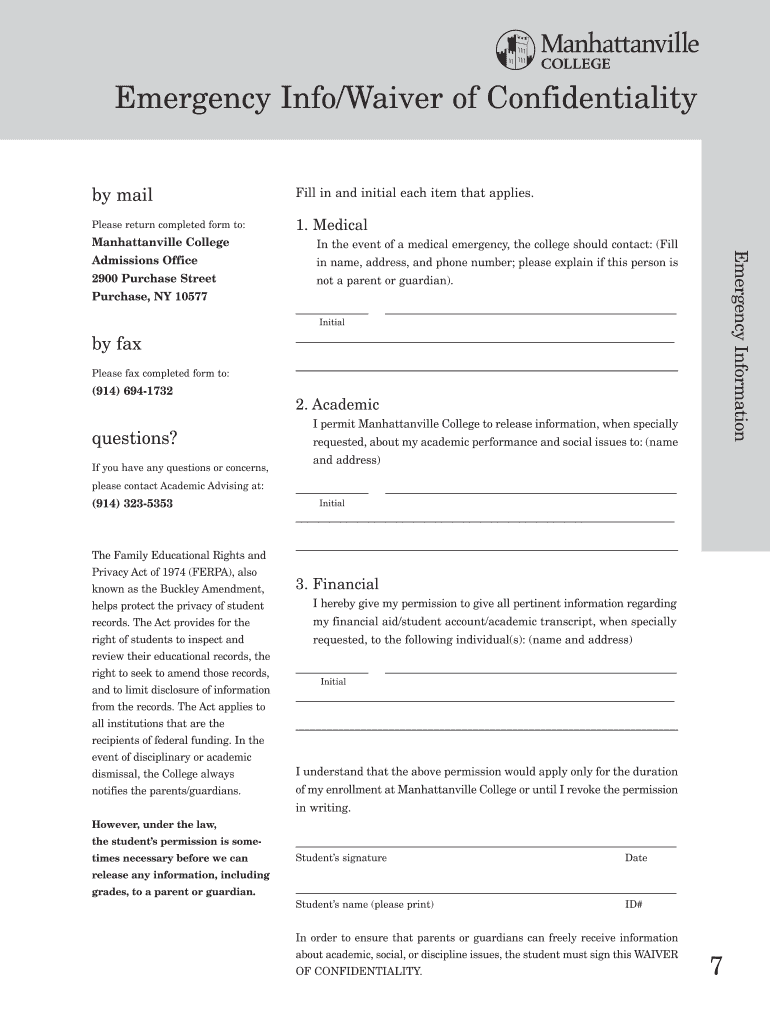 Get the free Emergency InfoWaiver of Confidentiality - cf manhattanville