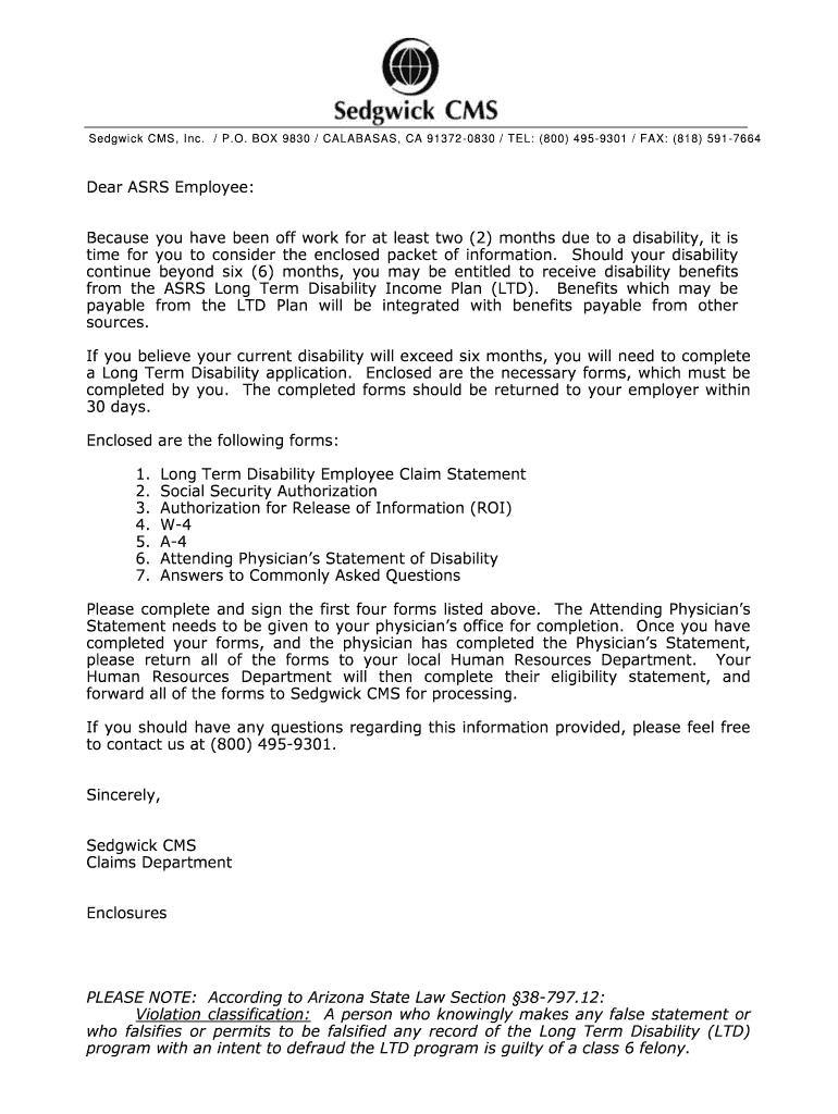Sidekick CMS, Inc. / P.O. BOX 9830 / CALABASAS, CA 91372 0830 / TEL: (800) 495 9301 / FAX: (818) 591 7664 Dear ASKS Employee: Because you have been off work for at least two (2) months due to a disability,