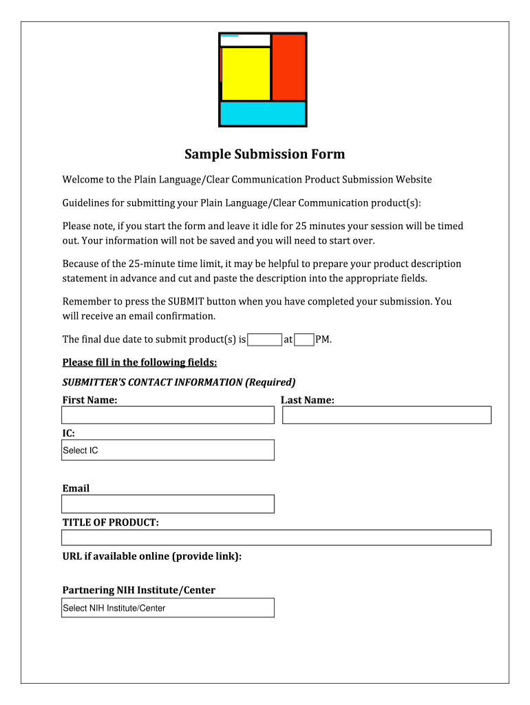 Get the free Sample Submission Form Plain Language Awards - Sample Submission Form - nih
