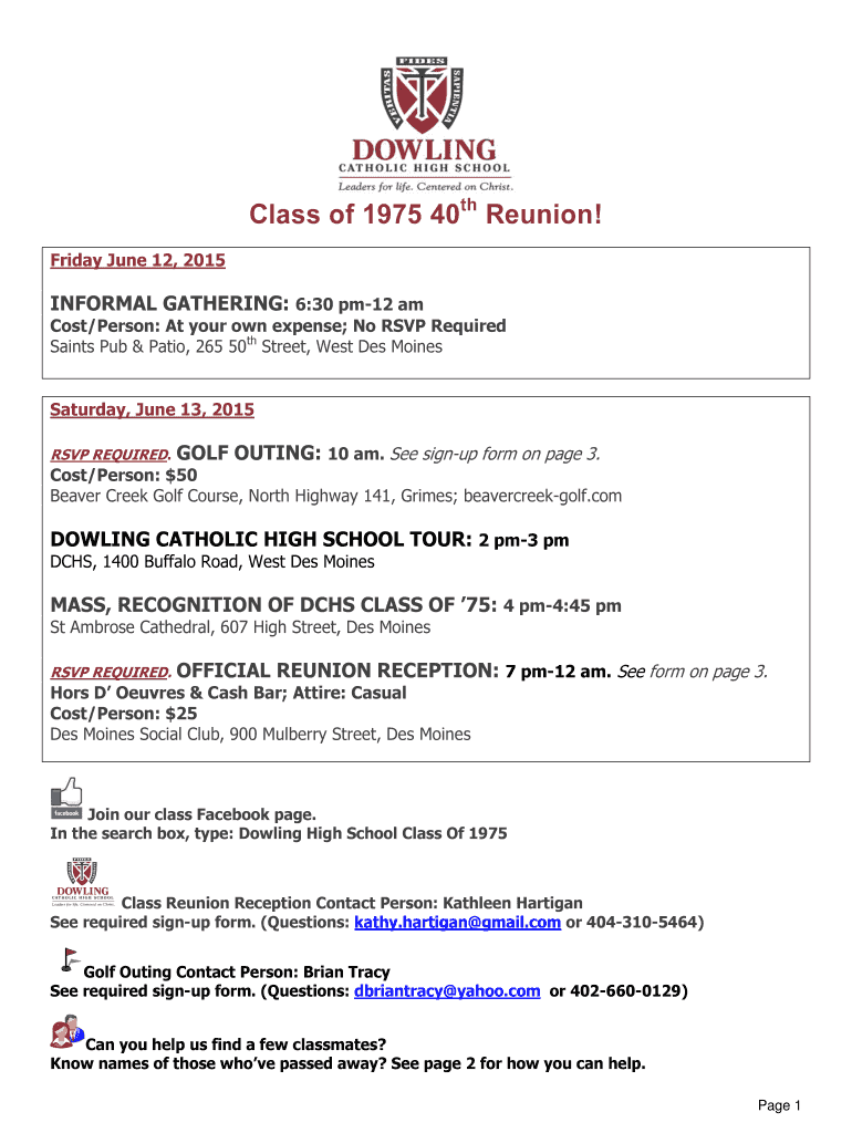 Get the free Class of 1975 40 Reunion - Dowling Catholic High School - my dowlingcatholic