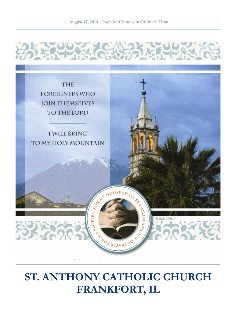 Get the free ANTHONY CATHOLIC CHURCH FRANKFORT, IL Page Two August 17, 2014 Saint Anthony Catholi...