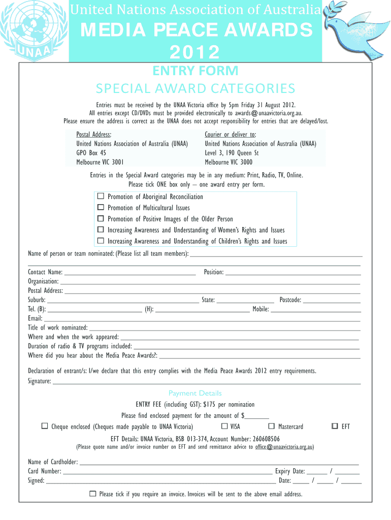 Get the free United Nations Association of Australia MEDIA PEACE AWARDS - unaavictoria org
