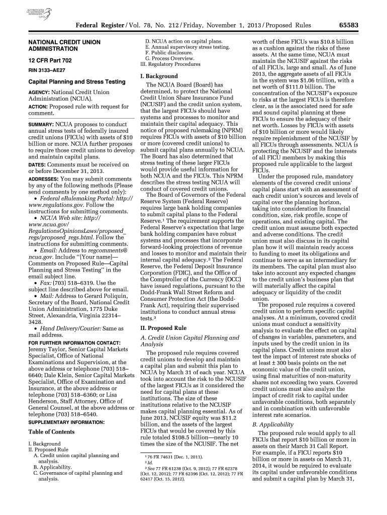 Get the free NCUA action on capital plans - ncua
