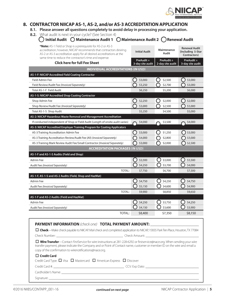 NICAP ACCREDITATION CONTRACTOR APPLICATION PACKAGE AS1F Program for Accreditation of Field Coatings Contractor AS1S Program for Accreditation of Shop Coatings Contractor AS2 Program for Accreditation