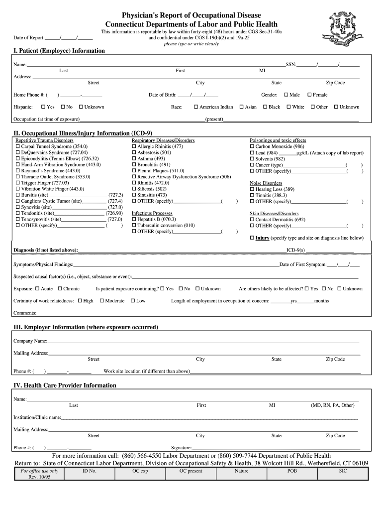 Get the free Physicians Report of Occupational Disease - ctgov