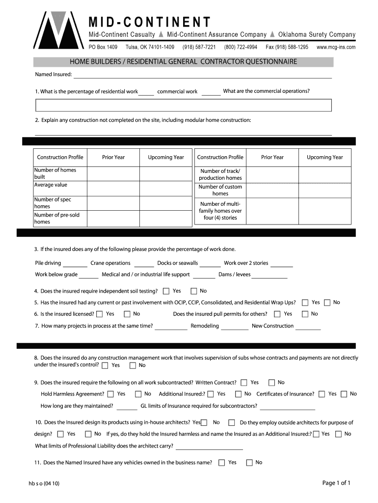 Get the free HOME BUILDERS RESIDENTIAL GENERAL CONTRACTOR QUESTIONNAIRE