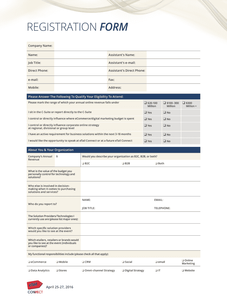 Get the free REGISTRATION FORM - etailconnectwbresearchcom
