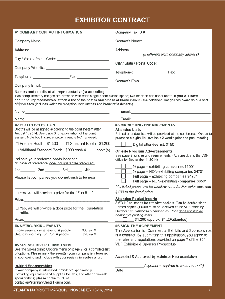 EXHIBITOR CONTRACT #1 COMPANY CONTACT INFORMATION Company Tax ID # Company Name: Contacts Name: Address: Address: (if different from company address) City / State / Postal Code: City / State / Postal