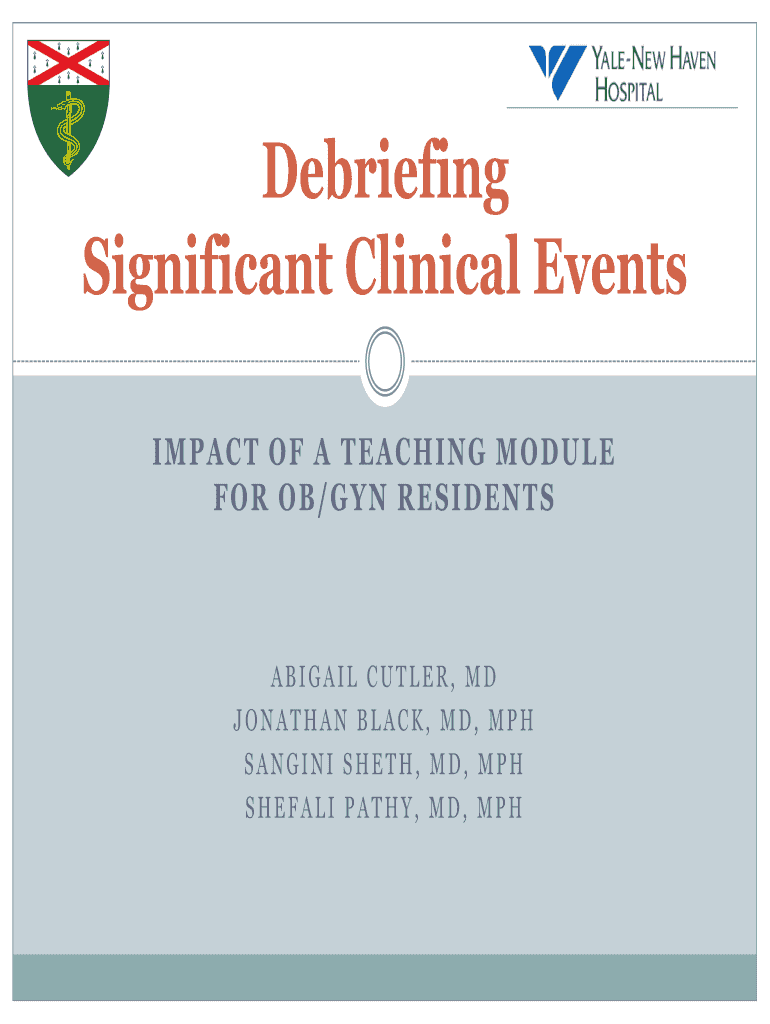 Debriefing Significant Clinical Events IMPACT OF A TEACHING MODULE FOR OB/GUN RESIDENTS ABIGAIL CUTLER, MD JONATHAN BLACK, MD, MPH SINGING SETH, MD, MPH SHEBELI PATH, MD, MPH Disclosure Statement