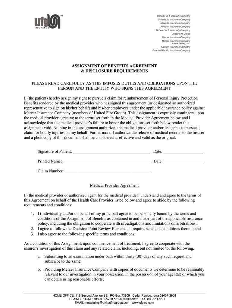 Get the free ASSIGNMENT OF BENEFITS AGREEMENT DISCLOSURE REQUIREMENTS