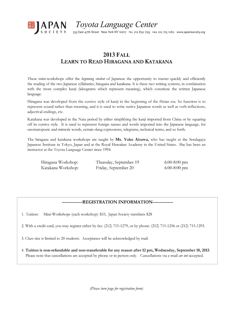 Get the free 2013 Fall Hiragana Katakana Workshops info reg with Japanese