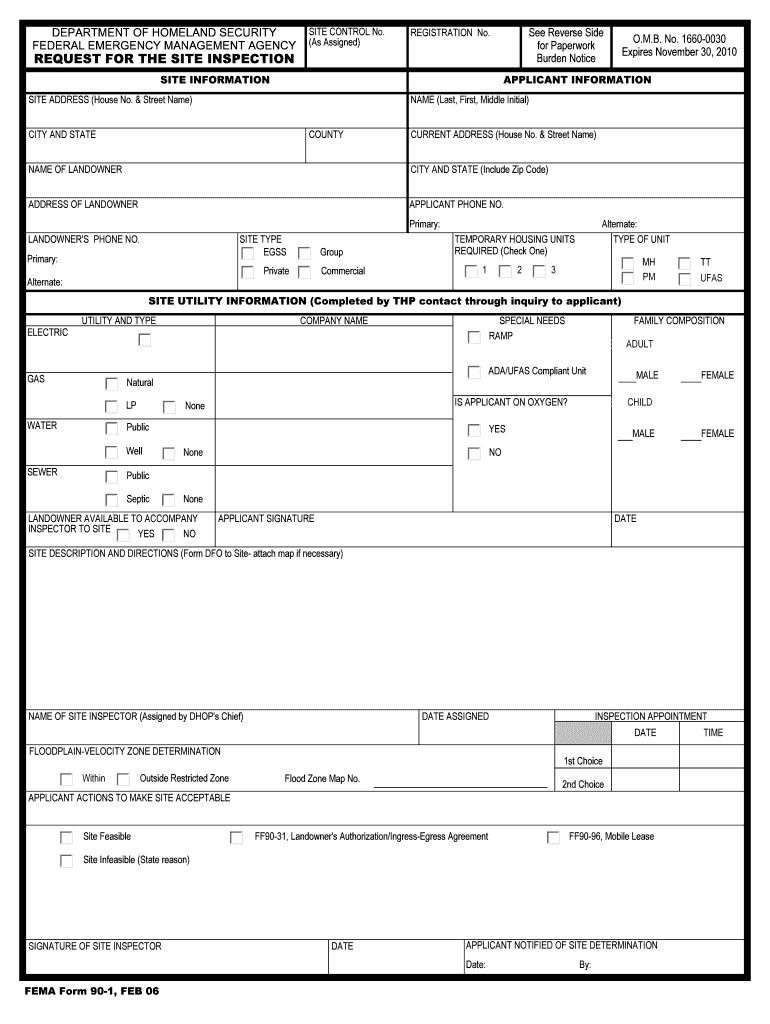 Get the free SITE CONTROL No - fema