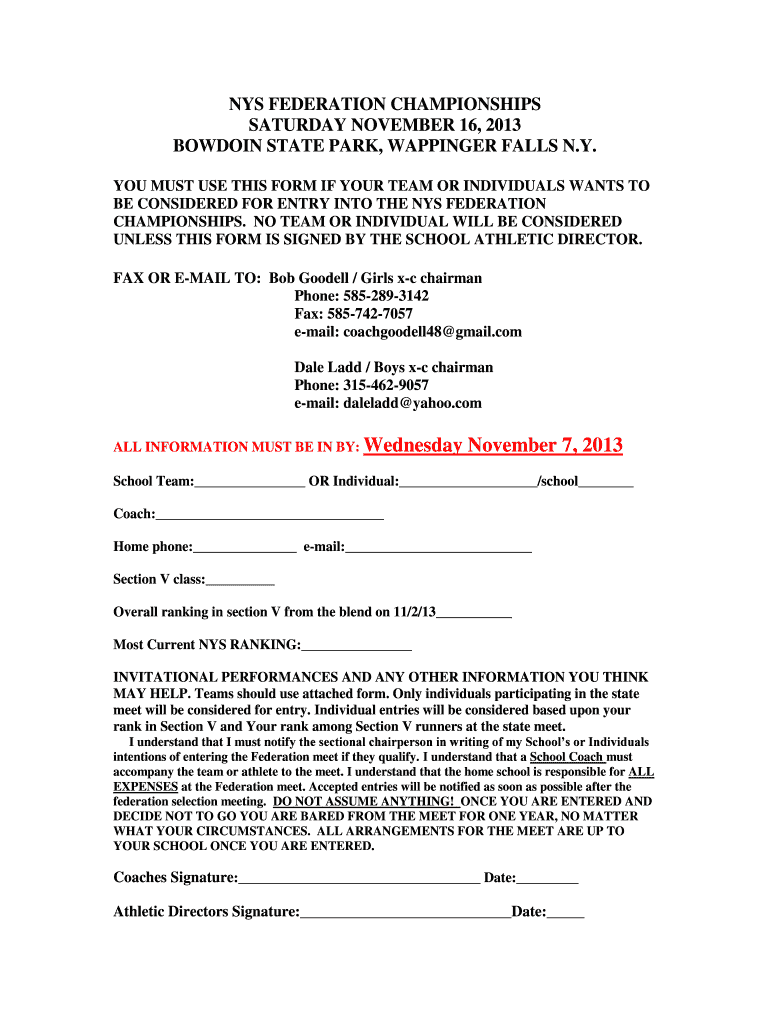 BE CONSIDERED FOR ENTRY INTO THE NYS FEDERATION