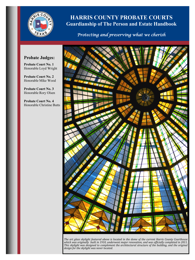 HARRIS COUNTY PROBATE COURTS Guardianship of The Person and Estate Handbook Protecting and preserving what we cherish Probate Judges: Probate Court No. 1 Honorable Loyd Wright Probate Court No. 2