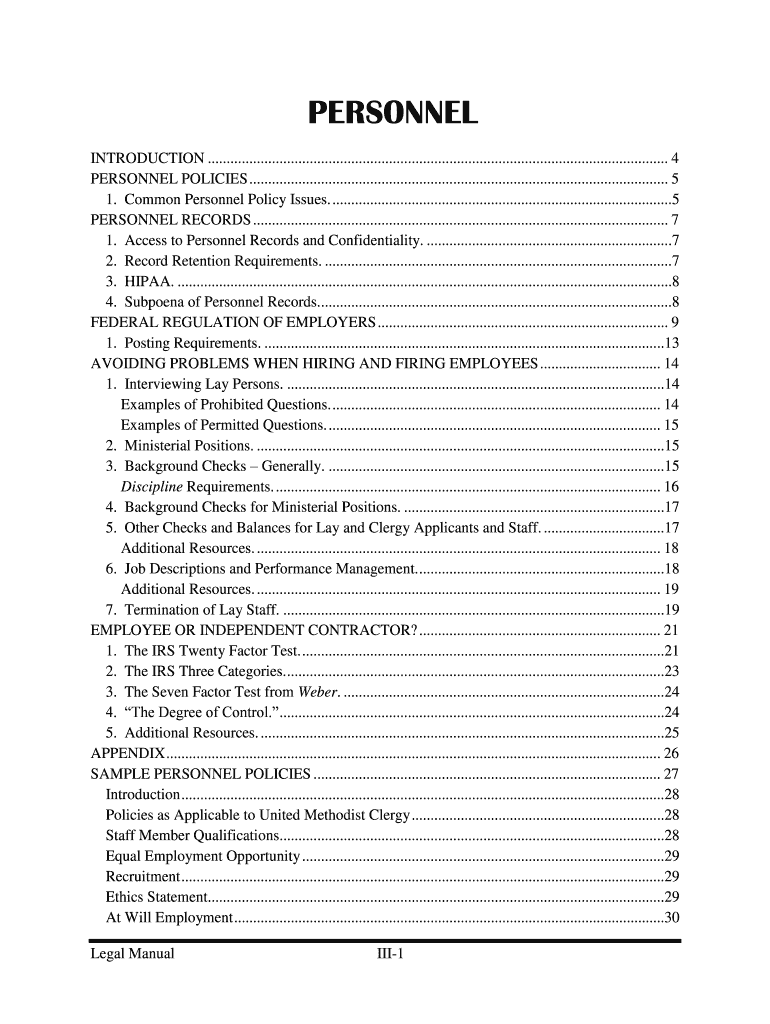 PERSONNEL POLICIES ...............................................................................................................