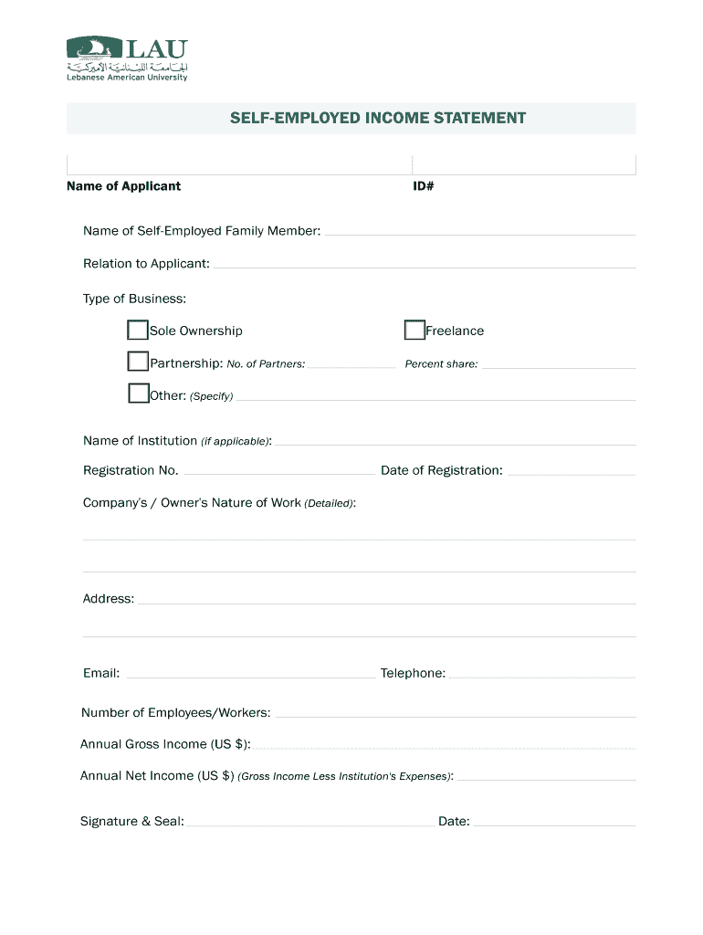 Get the free Bselfb-bemployedb income bstatementb - Application - faonline lau edu