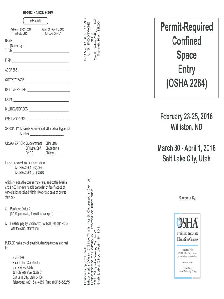 Get the free OSHA 2264 Permit-Required - medicine utah