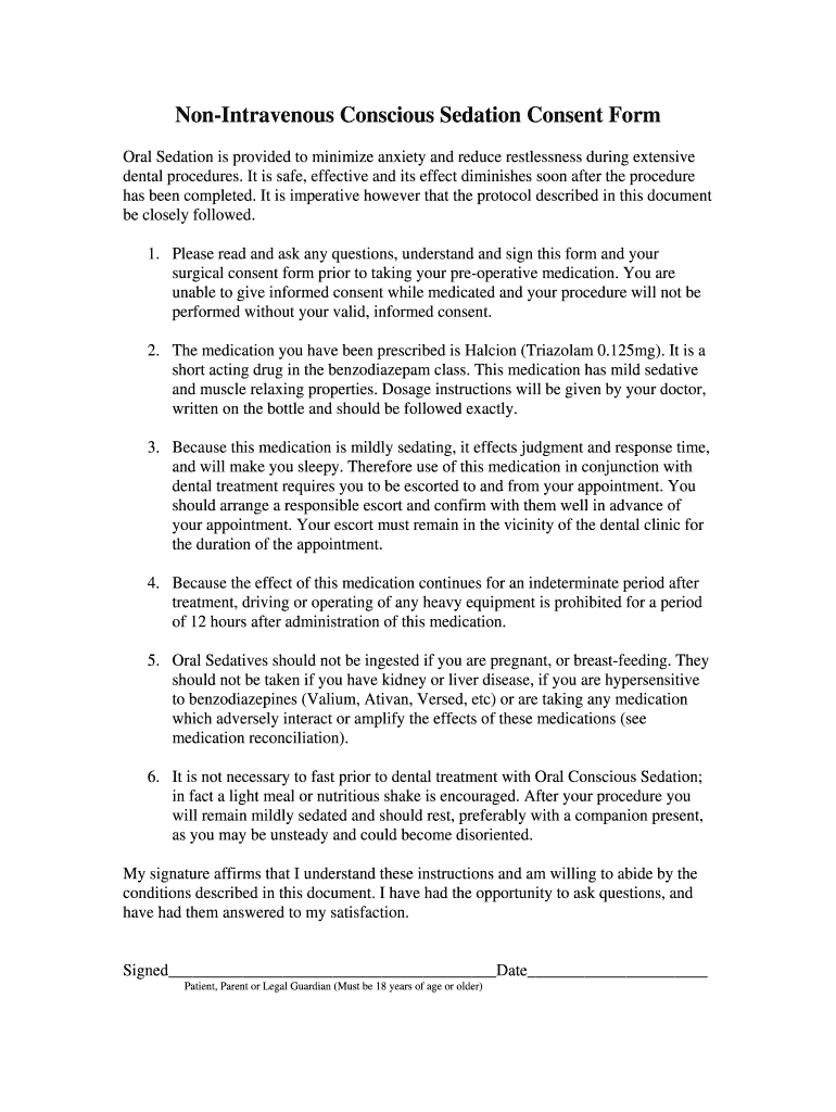 Get the free Non-Intravenous Conscious Sedation Consent Form