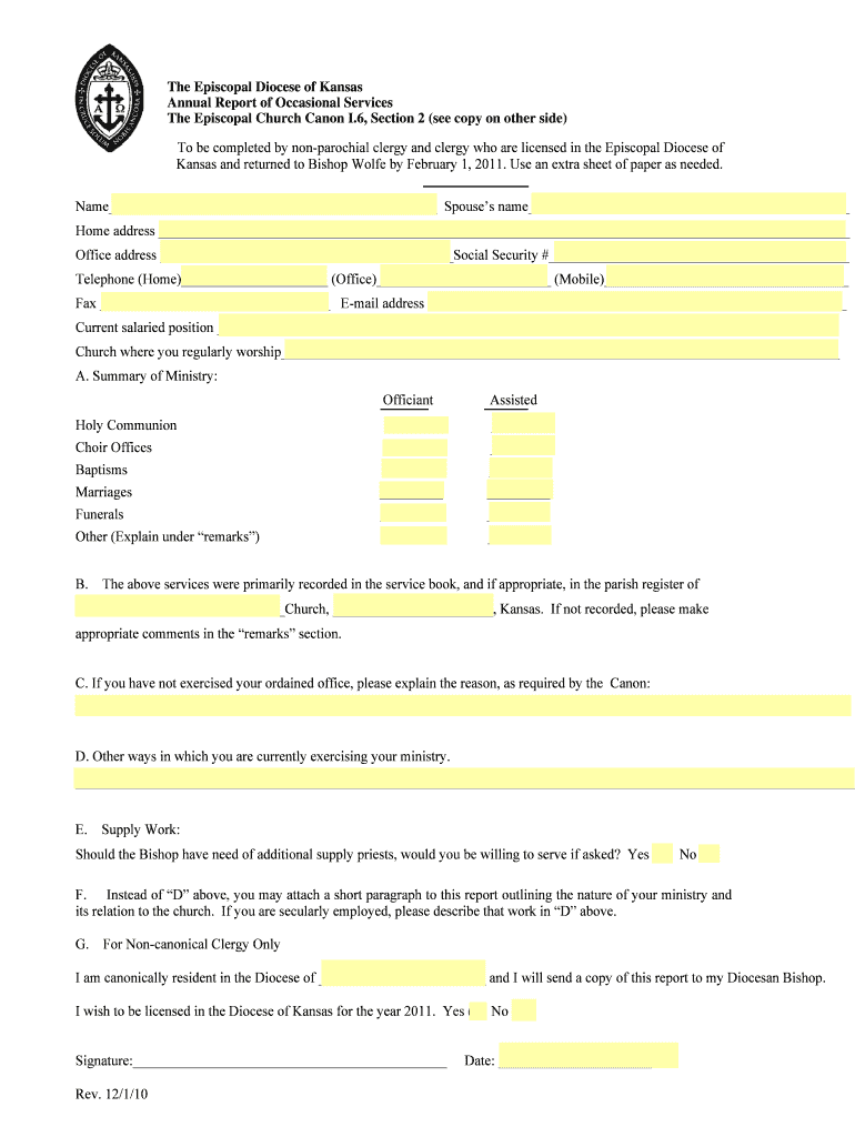 Get the free nonparochial clergy annual report.doc - episcopal-ks