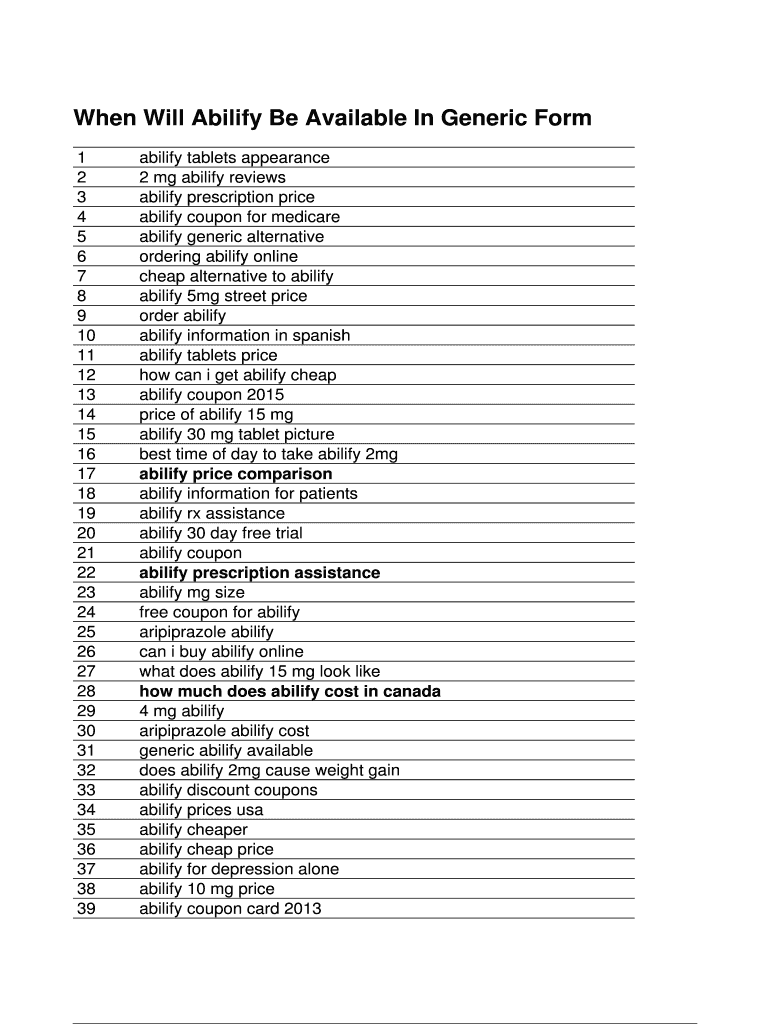 Get the free When Will Abilify Be Available In Generic Form - qat qld edu