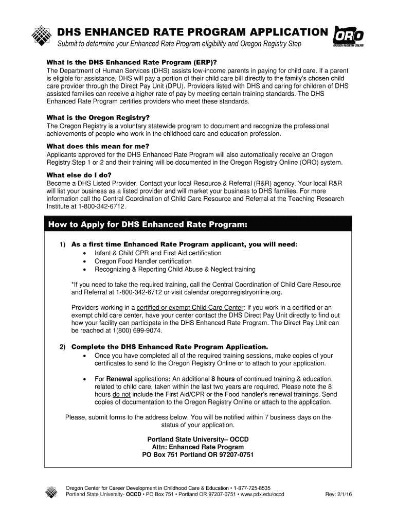 Get the free DHS ENHANCED RATE PROGRAM APPLICATION - pdx
