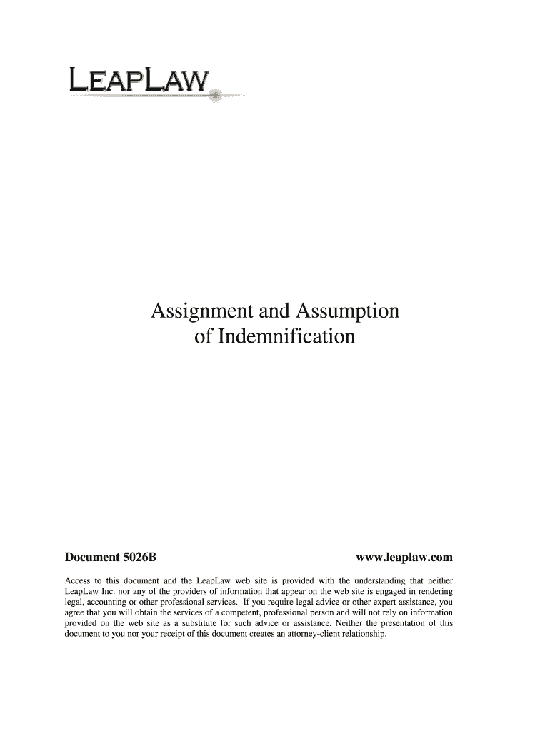 Assignment and Assumption of Indemnification Document 5026B www.leaplaw.com Access to this document and the Leap website is provided with the understanding that neither Leap Inc. nor any of the providers