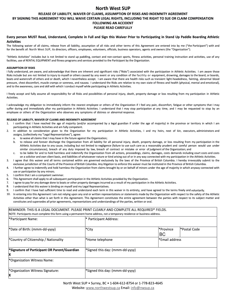 Get, Create, Make and Sign north west sup waiver