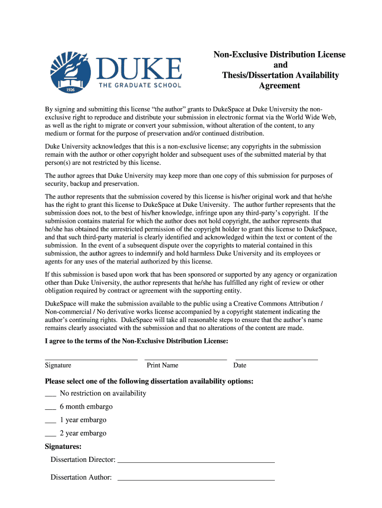 Get the free NON-EXCLUSIVE DISTRIBUTION LICENSE - gradschool duke