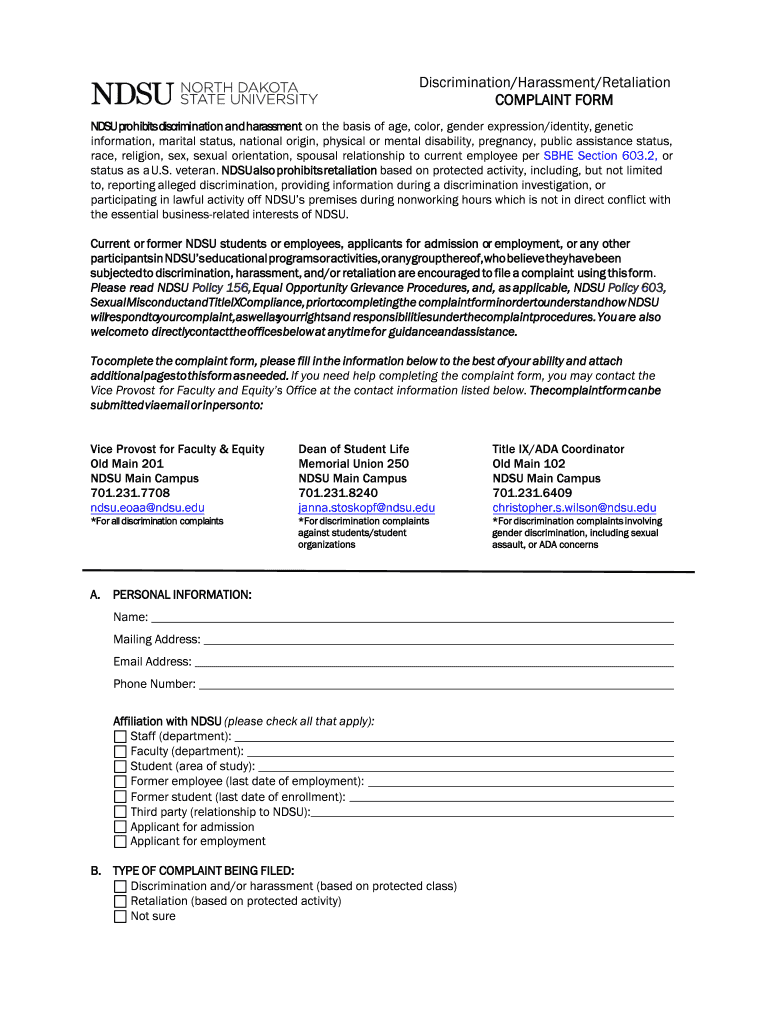 Get the free NDSU prohibits discrimination and harassment on the basis of age, color, gender expr...