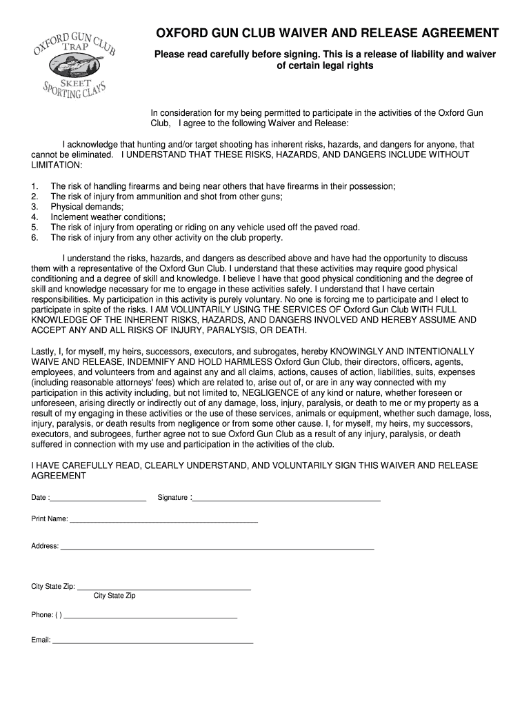 New waiver - oxfordgunclub is a form that must be filled out by individuals participating in activities at the Oxford Gun Club.