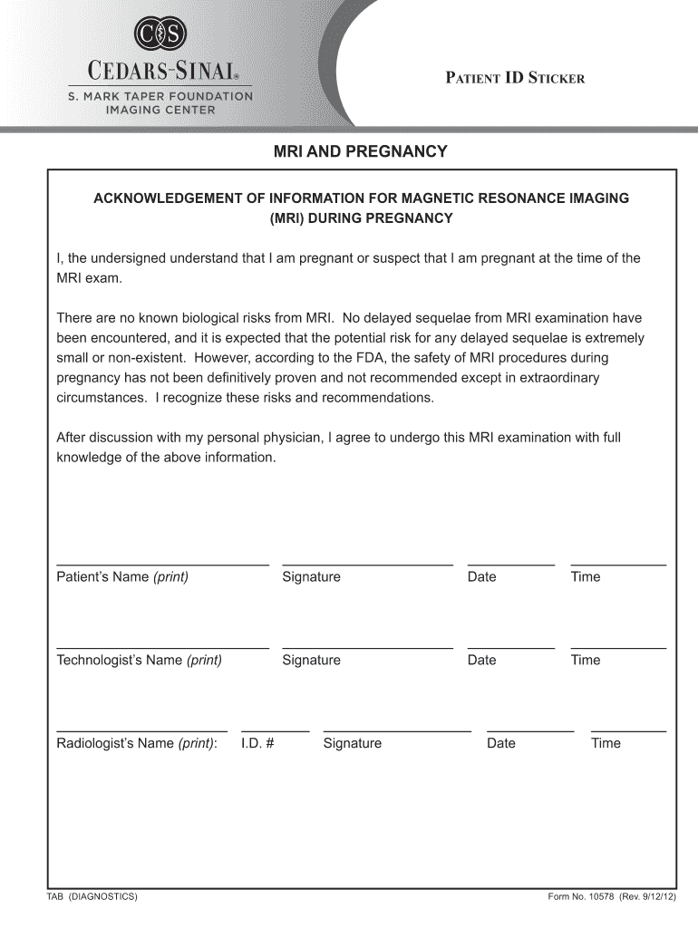 Pregnant women who require an MRI scan during their pregnancy may need to file specific paperwork with their healthcare provider.